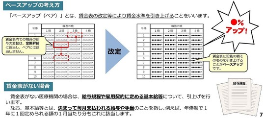 医療機関等においては、この報酬分をベースアップ(基本給又は決まって毎月支払われる