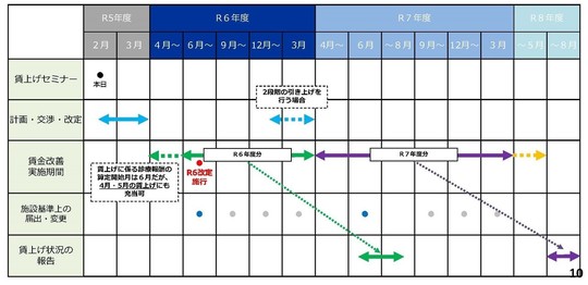 医療機関等においては、令和6年度と令和7年度の2年間の賃金引き上げについて計画し