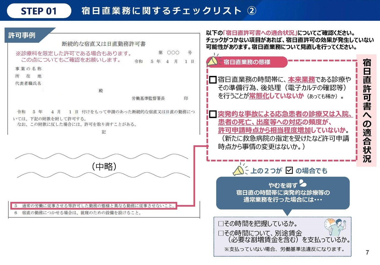 | ステップ1 宿日直許可書の内容と実態を確認しよう!! |